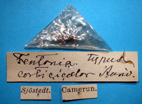 Fentonia corticicolor Aurivillius, 1904. Reference: Aurivillius, C. 1904, Beiträge zur Kenntnis der Insektenfauna von Kamerun, N:o 11, Lepidoptera Heterocera. - Arkiv för Zoologi Band 2 nr. 4, Kungl. Boktryckeriet P.A. Norstedt & Söner, Stockholm. pp. 1-68 Mit 51 Textfiguren, 1 Tafel. Return to species-list. |